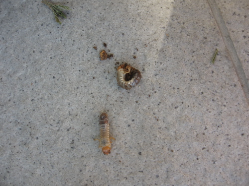 いらっしゃいました…コガネの幼虫10匹ほど…