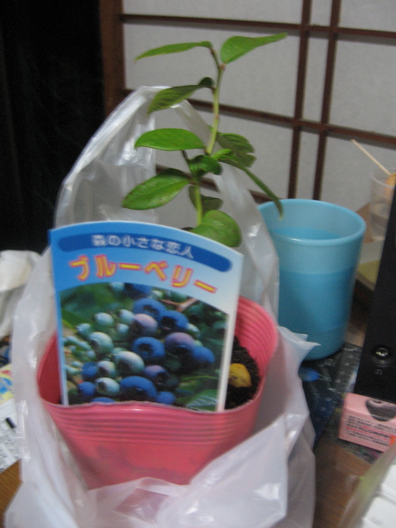 今日大学へ行ったらブルーベリー好きなことを知っている友達が苗を買って来てくれました。