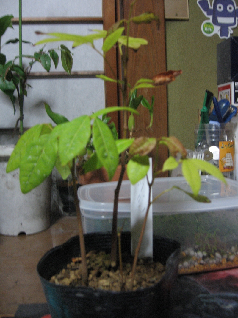 ちょっと分かりにくいかもしれませんが、ポポーの実生苗です。