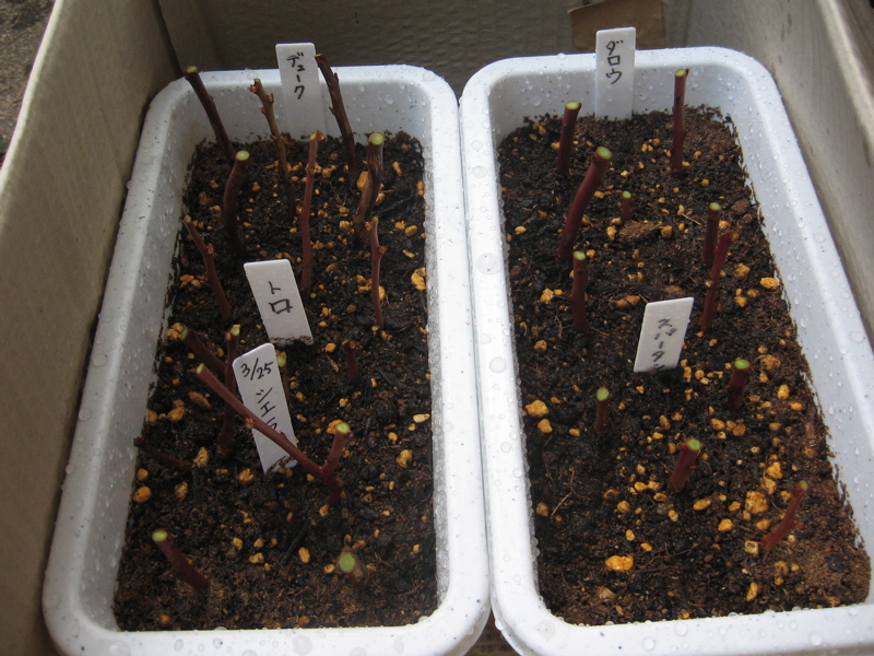 下の写真は今日のお昼に挿し木したものです。