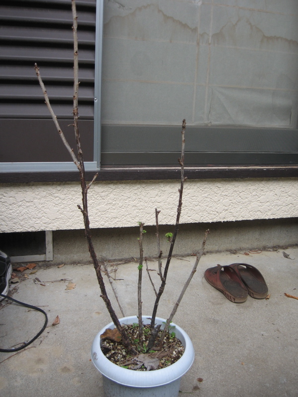 カラントはすでに落葉してしまい、なぜか新芽がほんの少し芽吹いてしまってます。