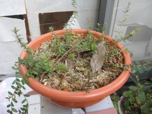 親株の伸びすぎた枝をちょきんちょきんと切って適当にさしたら、枝が細いためか100%の成功率でした。大きくなるにはまだまだかかりそうです。