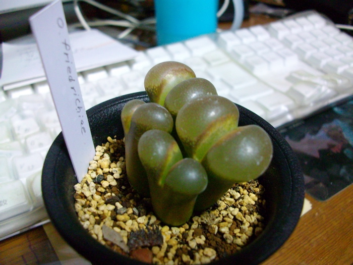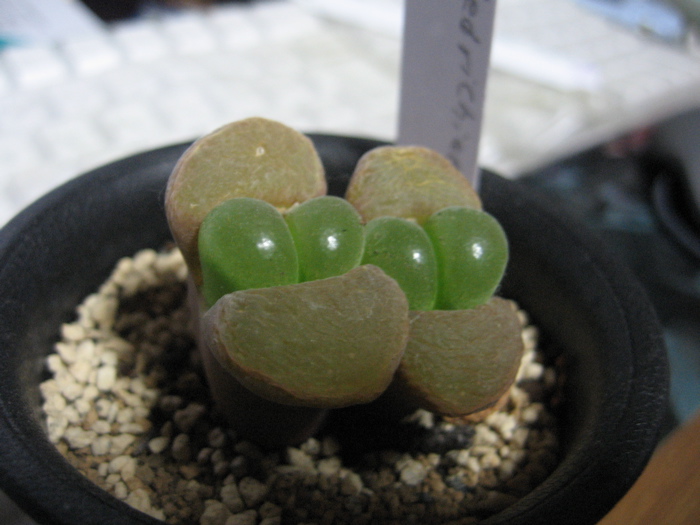 うちのプリンこと、多肉のオフタモフィルム「風鈴玉」です。