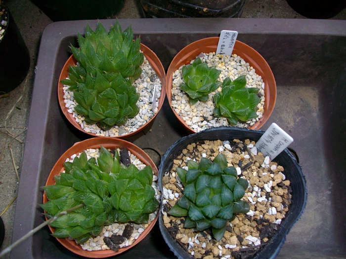ブログのお仲間のakiさんからいただいた多肉たち(右下のは違います)もぷりぷりしてきました。